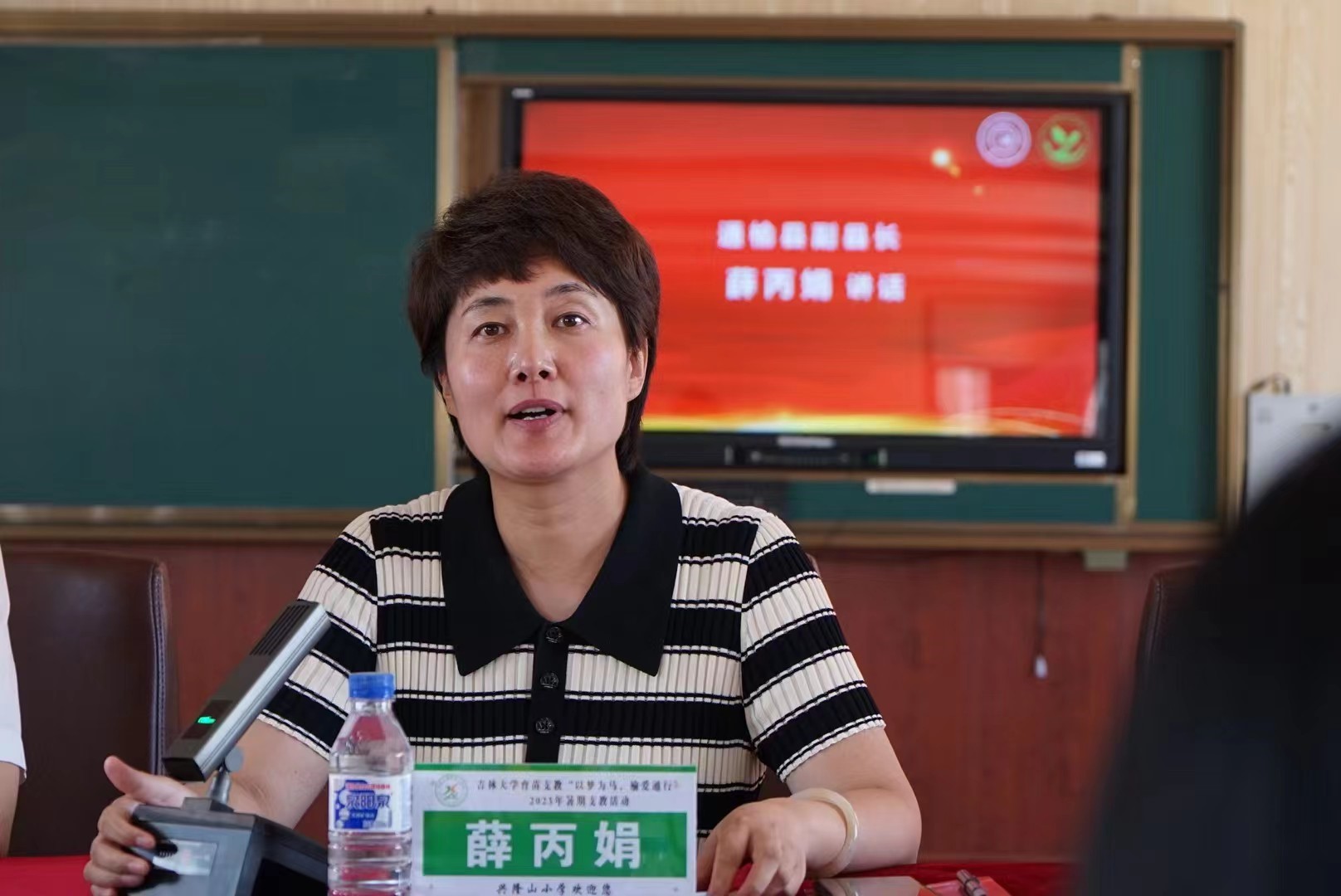 通榆县人民政府副县长薛丙娟在仪式上表示,感谢吉林大学多年来对通榆县的帮扶,通榆县将继续与吉林大学开展深入合作,拓宽合作领域,坚持资源共享、互利互赢,为推动校地协调发展做出新的更大贡献。并表示将会鼎力支持支教队成员的工作,为志愿者提供良好的后勤保障,让志愿者全身心地投入到教育工作中去。