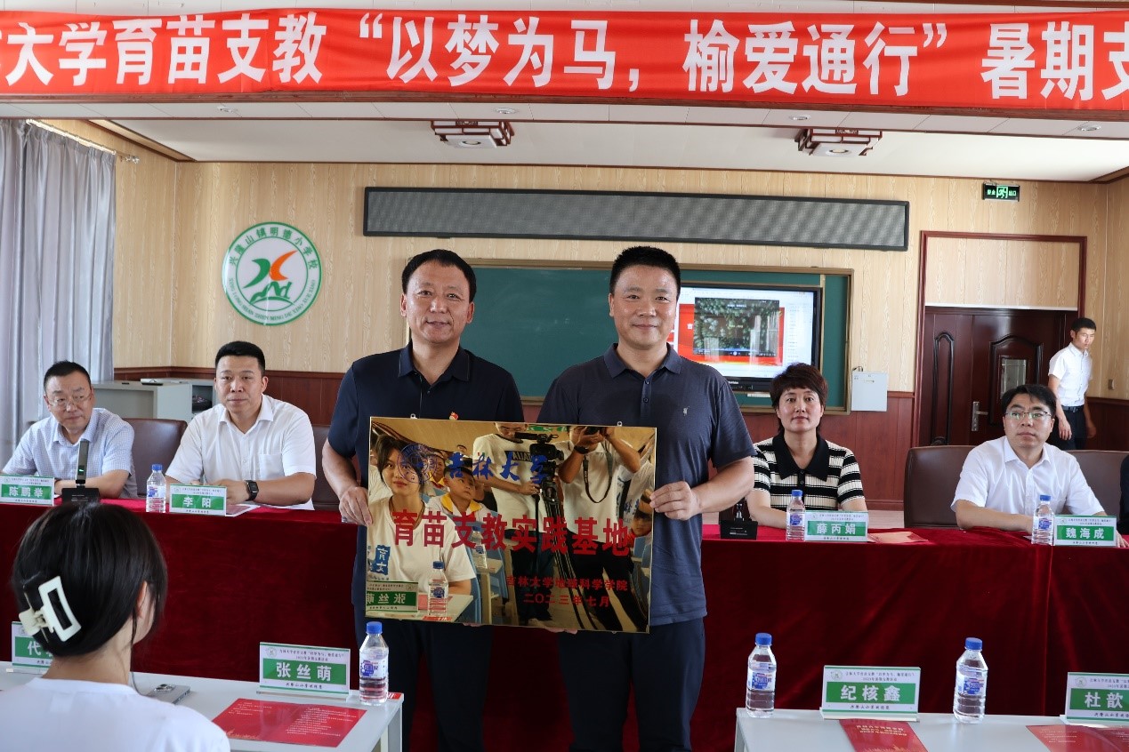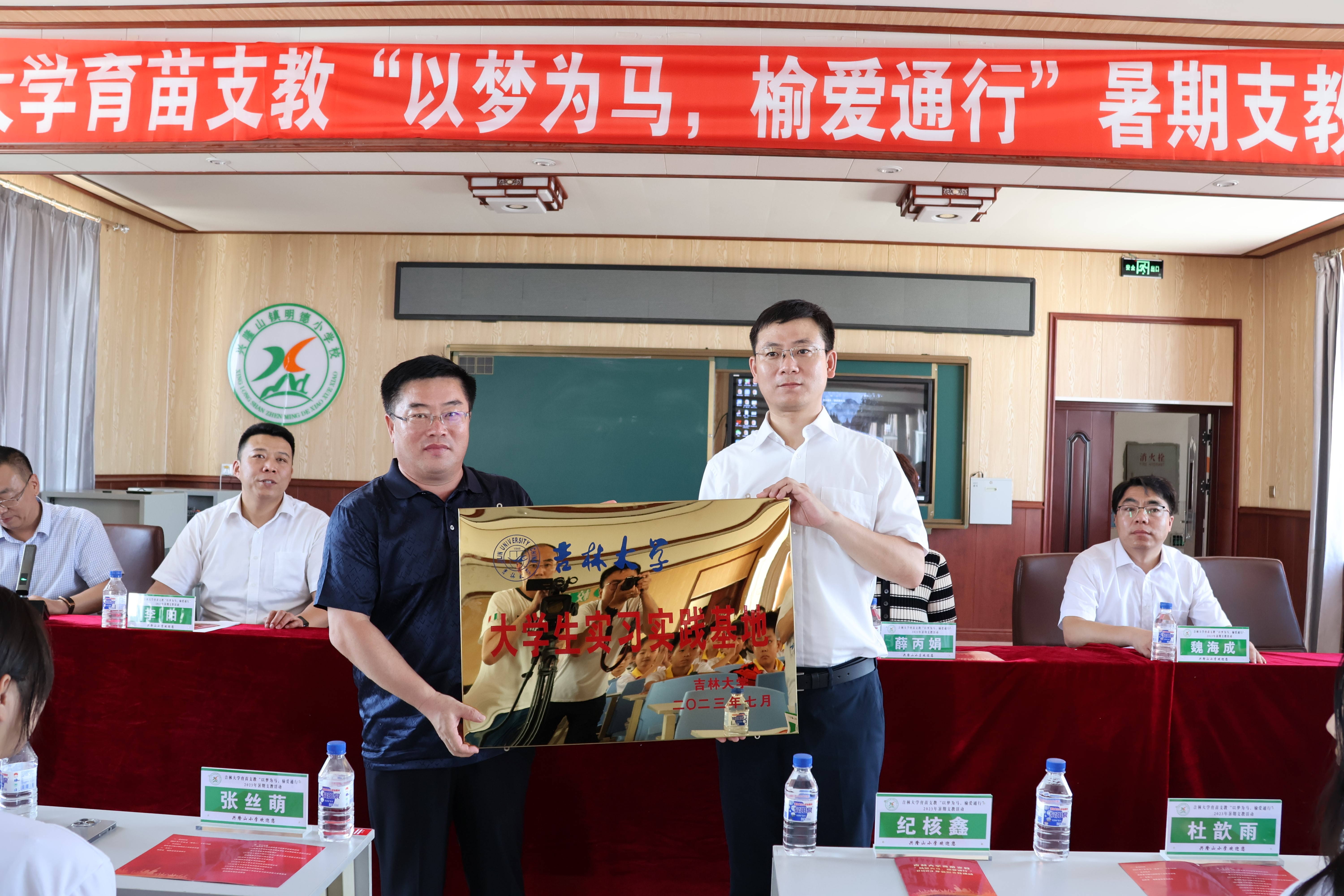 张刚副主席向杨志刚校长进行“吉林大学育苗支教实践基地”授牌
