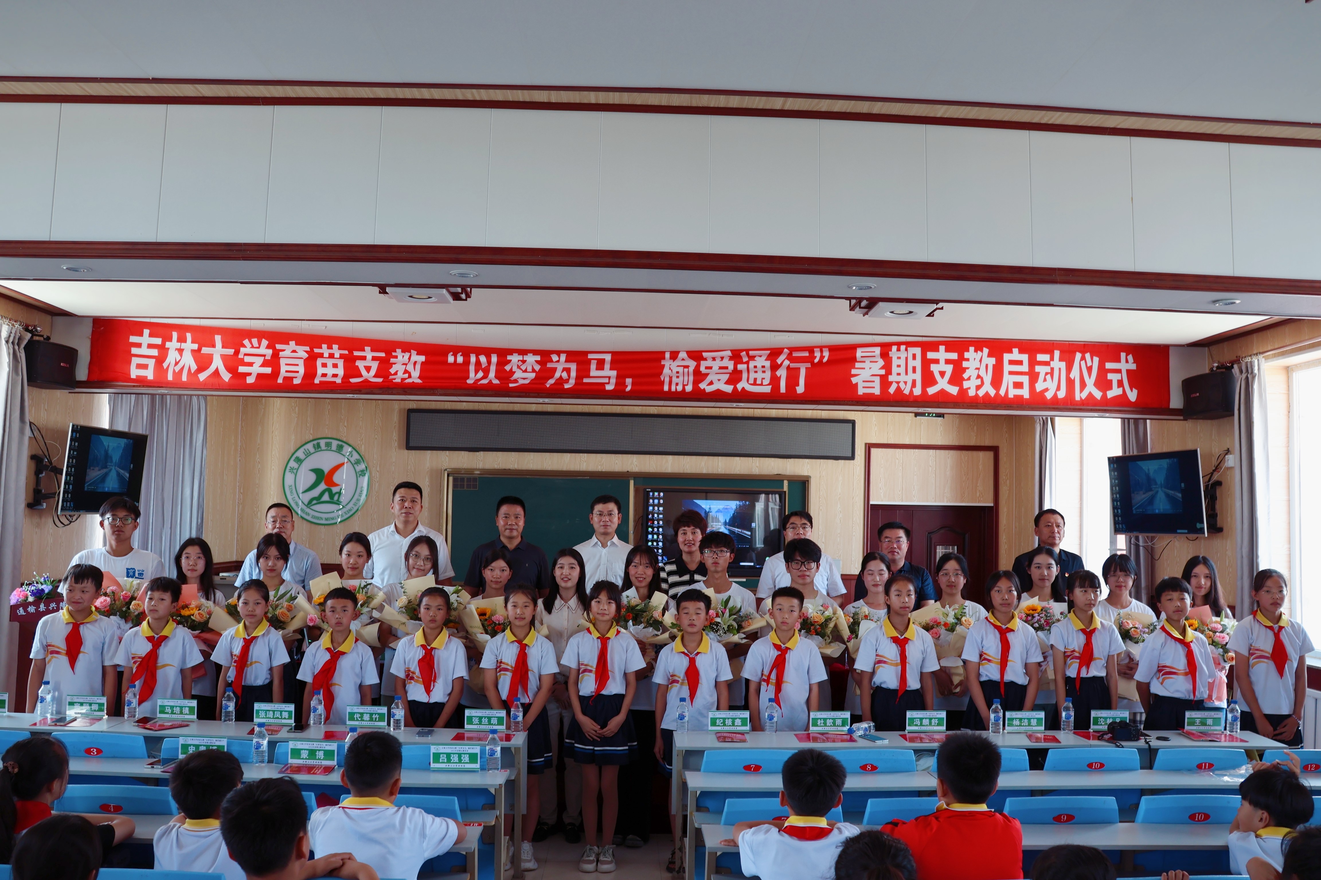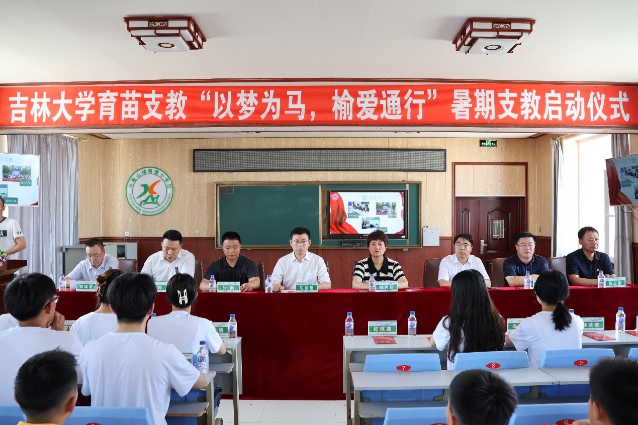 2023年7月18日14点,吉林大学育苗支教“以梦为马,榆爱通行”2023年暑期支教启动仪式在吉林省白城市通榆县兴隆山镇明德小学召开。出席本次启动仪式的通榆县相关领导有通榆县人民政府副县长薛丙娟,兴隆山镇党委书记夏彦斌,教育局局长陈鹏举,兴隆山镇明德小学校长杨志刚。出席本次启动仪式的吉林大学领导老师有吉林大学团委书记马景惠,乡村振兴工作办公室主任兼工会副主席张刚,团委副书记魏海成,必赢线路检测中心党委副书记兼副院长李阳,育苗支教指导教师纪核鑫。吉林大学育苗支教通榆二队全体支教队员,兴隆山镇明德小学150余名师生代表、家长代表参加活动。本次启动仪式由通榆县教育局局长陈鹏举主持。