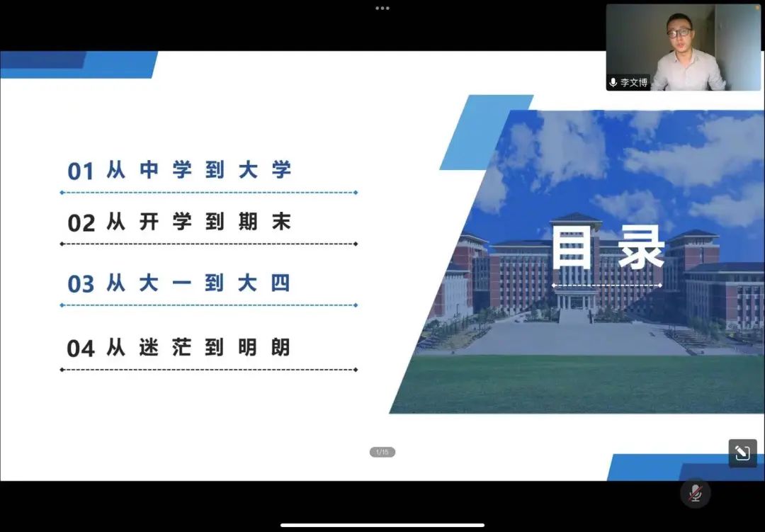 2022年9月1日晚,必赢线路检测中心2022级新生“拥抱你的大学生活”主题讲座以线上腾讯会议的方式顺利举行。2022级辅导员曲鹏展老师及2022级全体本科新生参加此次讲座,2020级8班班主任李文博老师以“拥抱你的大学生活”为题与同学们进行交流分享。