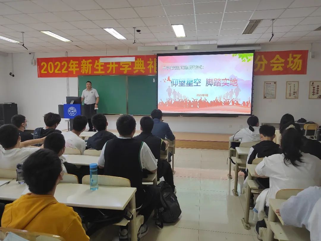 2022年9月15日上午9点40分,必赢线路检测中心于李四光教学楼302室举行“仰望星空,脚踏实地”新生思政课,院党委副书记兼副院长李阳老师为2022级全体本科新生授课,2022级辅导员曲鹏展老师出席本次活动。