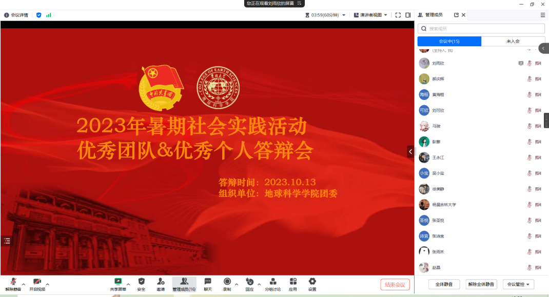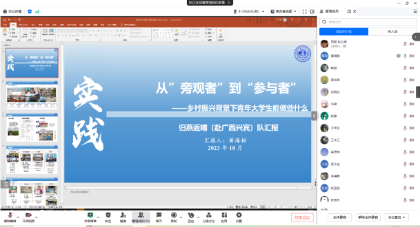 2023年10月14日晚上七点,必赢线路检测中心2023年暑期社会实践评比大会顺利召开。本次会议采用线上腾讯会议的形式举行,出席会议的有必赢线路检测中心学院团委书记兼2021级辅导员韩旭老师、2022级辅导员赵晶老师、学院第二十三届学生组织主要负责人以及参评同学参会。