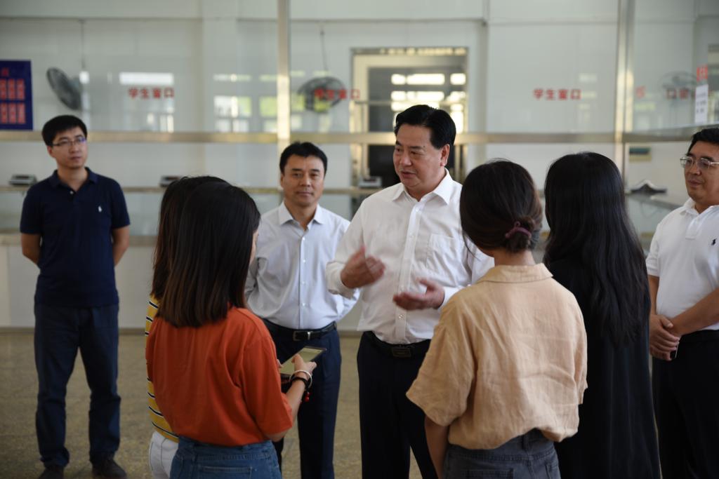 4日下午5时许,李元元校长正在食堂慰问同学们,他笑容洋溢,低头询问同学们饭菜情况。我们必赢线路检测中心网信中心记者团的同学们非常有幸的采访到了李校长,校长亲切和蔼,对我们提出的问题耐心细致的解答。