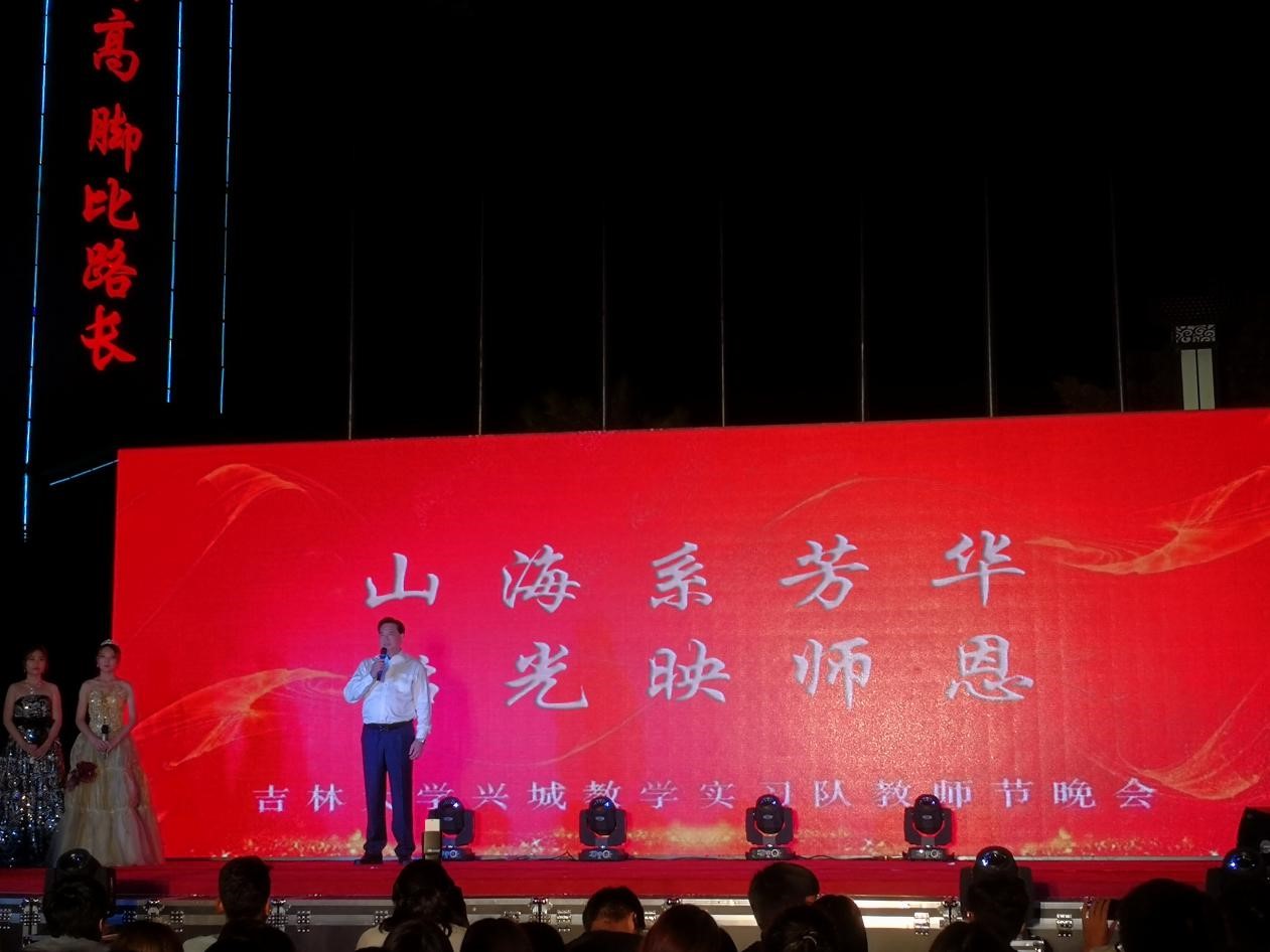 晚会在吉林大学校歌中结束,各位领导,老师与演职人员合影留念。祝同学们圆满完成本年度的兴城实习任务,预祝全体老师们,教师节快乐!